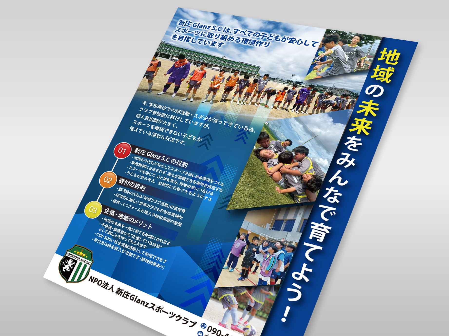 山形市、米沢市、天童市、新庄市でチラシデザイン制作はnanohaへ。山形県のNPO法人新庄Glanz スポーツクラブ様より、スポンサー依頼チラシのデザイン作成のご依頼を頂きました。チラシ作成後、ホームページ制作のご発注も頂き、トータルデザインとして、ご依頼いただきました。